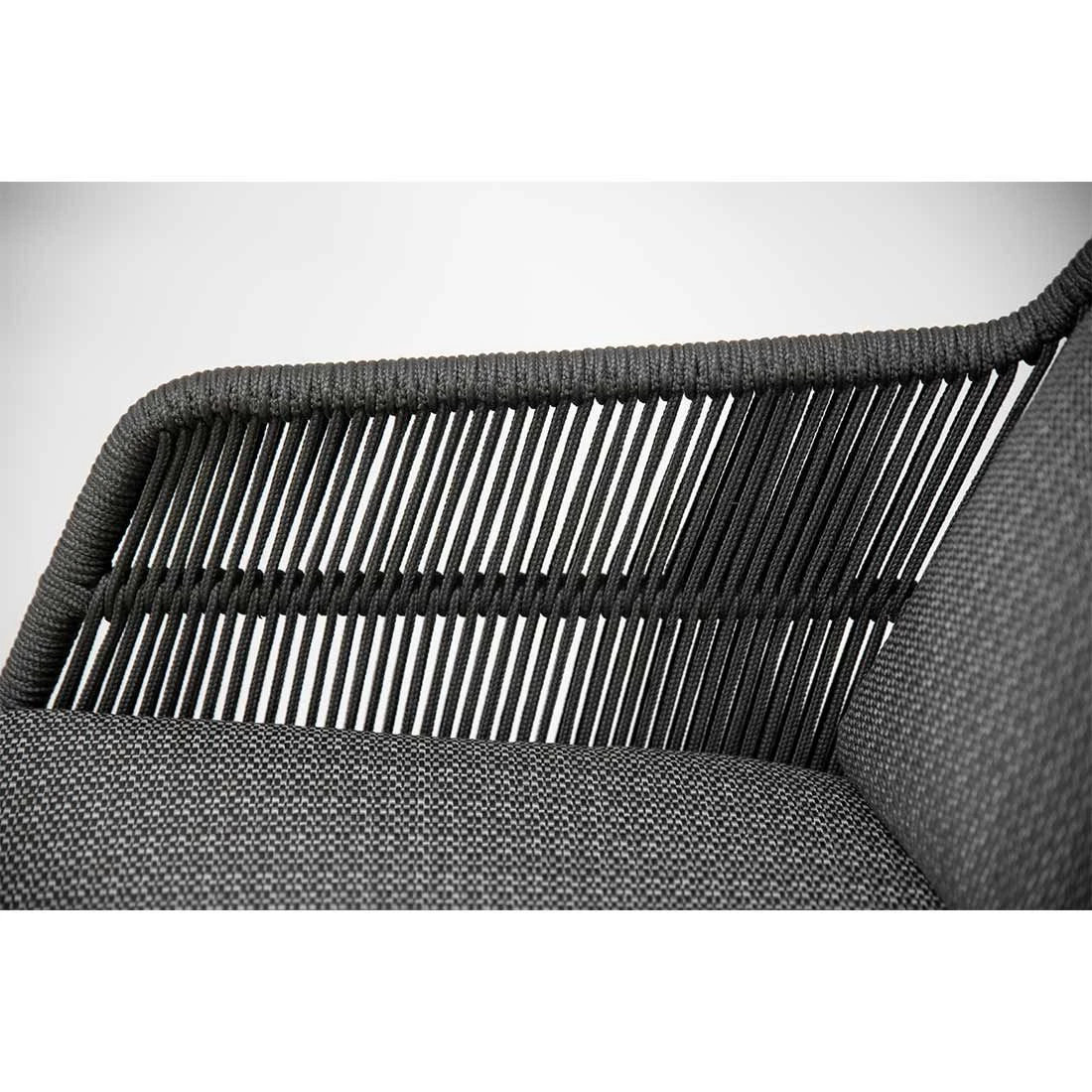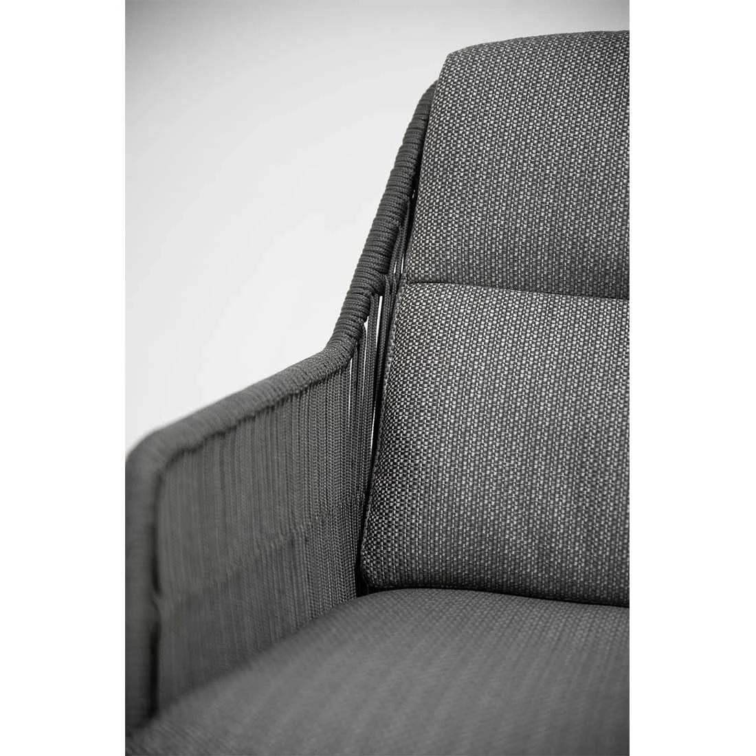 Das Gestell besteht aus pflegeleichtem und wetterfestem Aluminium. Die Sitzfläche besteht aus modernem Rope-Geflecht. Die Sitzfläche ist in ansprechendem Platinum gehalten. Für die Bezüge wird Olefin verwendet. Der Marken-Outdoorstoff überzeugt mit einer hohen Witterungsbeständigkeit. Denn sowohl Sonne als auch Regen können dem robusten Outdoor-Stoff kaum etwas anhaben. Damit der Gartensessel optisch ansprechend ist, sind das Gestell und der Bezug im Farbton Anthrazit gehalten.