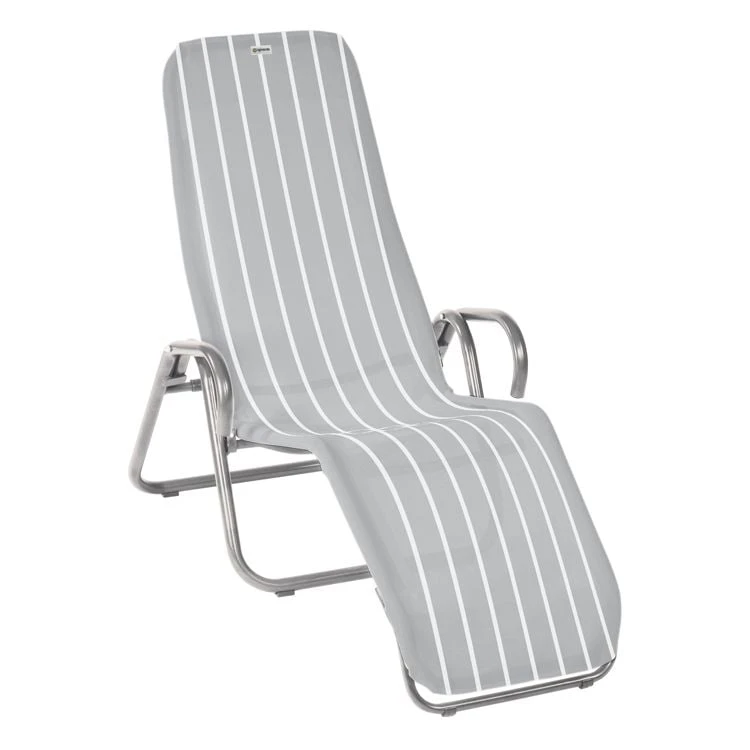 Das Gestell wird aus Stahl gefertigt und sorgt damit für stabilen Halt beim Sitzen. Für eine attraktive Optik ist das Gestell im Farbton Platin gehalten. Für die Bespannung der Sitzfläche wird hochwertiges Textilene verwendet. Es zeichnet sich durch eine hohe Robustheit gegenüber Hitze und Frost aus und ist leicht zu reinigen. Die Sitzfläche hat eine elegante Farbgebung in Grau.