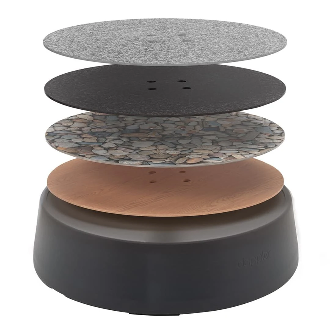 Die Dekorplatte (ca. 5kg) für den Rollsockel Expert Easy-Move wird zwischen Ständer und Standrohr gelegt/montiert. Es stehen 4 Dessins zur Auswahl.