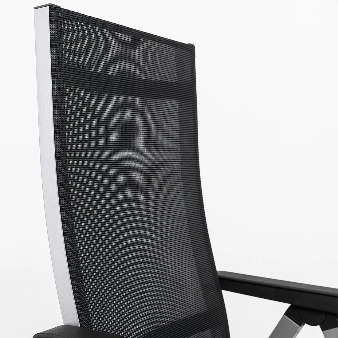 Das Gestell wird aus Aluminium gefertigt. Das geringe Eigengewicht des Materials macht den Klappsessel zu einem robusten, aber dennoch leicht zu transportierenden Sitzmöbel auf Ihrer Terrasse. Für eine attraktive Optik ist das Gestell im Farbton Silber gehalten. Ein weiteres Highlight des Klappsessels ist die Bespannung mit Textilene in der Farbe Lakritz. Dieser Bezugsstoff überzeugt durch eine hohe Robustheit gegenüber Hitze und Frost und ist leicht zu reinigen. Die Sitzfläche ist in ansprechendem Lakritz gehalten.