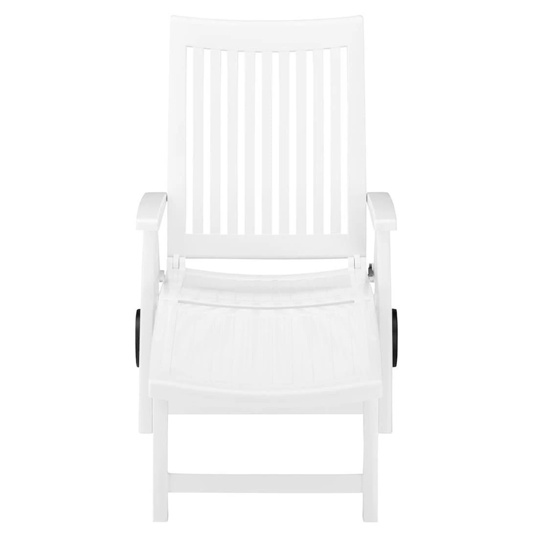 Die Gartenliege besteht vollständig aus Kunststoff. Dies erzeugt nicht nur ein geschmackvolles, sondern auch einheitliches Bild des attraktiven Möbels. Für ein perfekt stimmiges Gesamtbild sorgt die einheitliche Farbgebung in stilvollem Weiß.