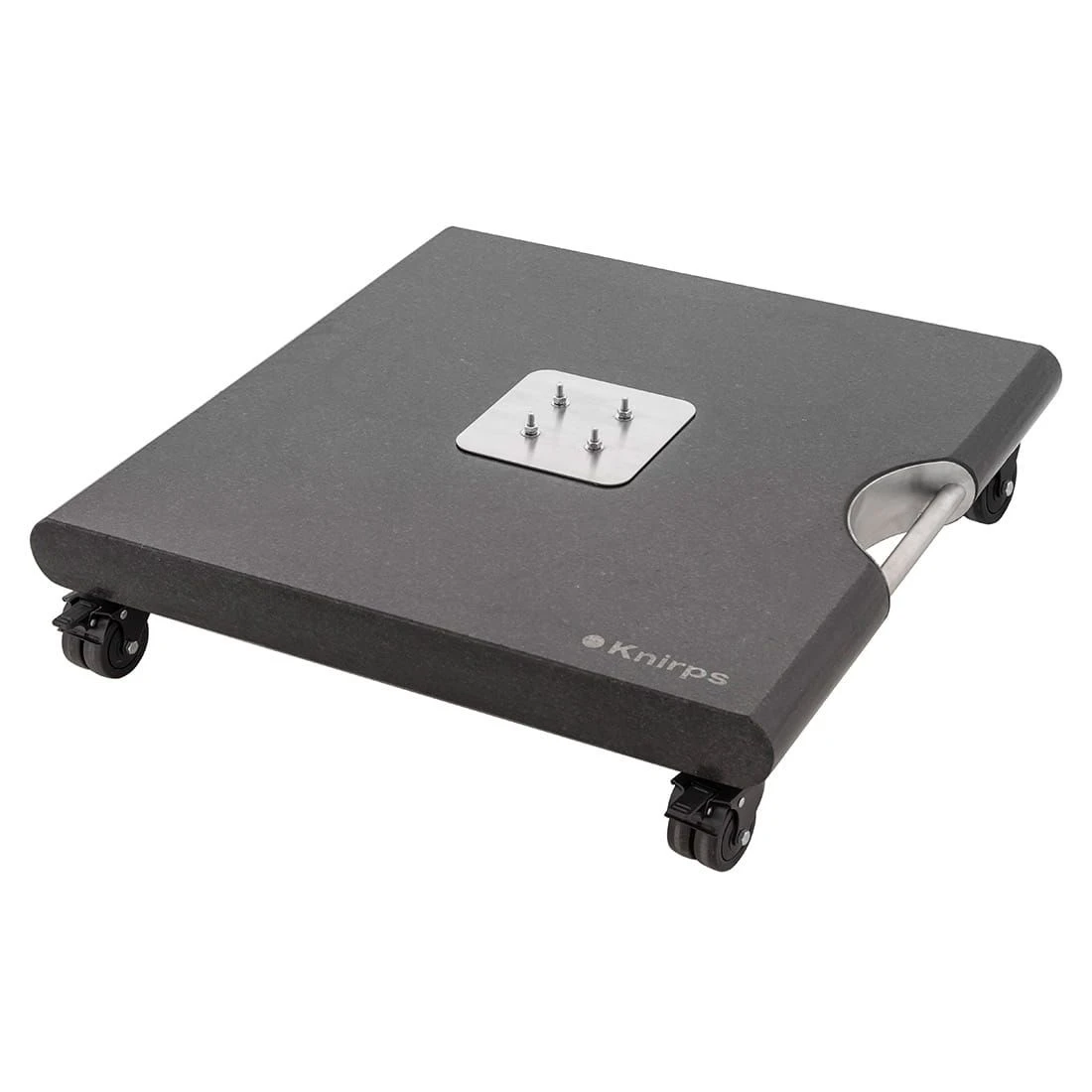Leichtes Handling bieten 4 leichtgängige Rollen. Weich abgerundete Kanten, sowie hochglänzend polierter Granit bieten eine ansprechende und standfeste Lösung für die Pendelschirmgrößen 340cm sowie die Größe 275x275cm.