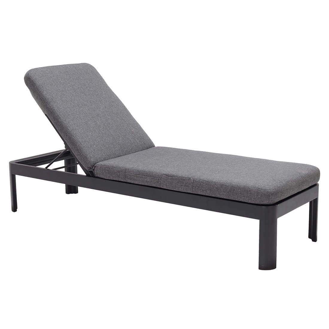 Das Gestell besteht aus pflegeleichtem und wetterfestem Aluminium in der Farbe Schwarz. Die Sitzfläche der Gartenliege wird mit Olefin bespannt.