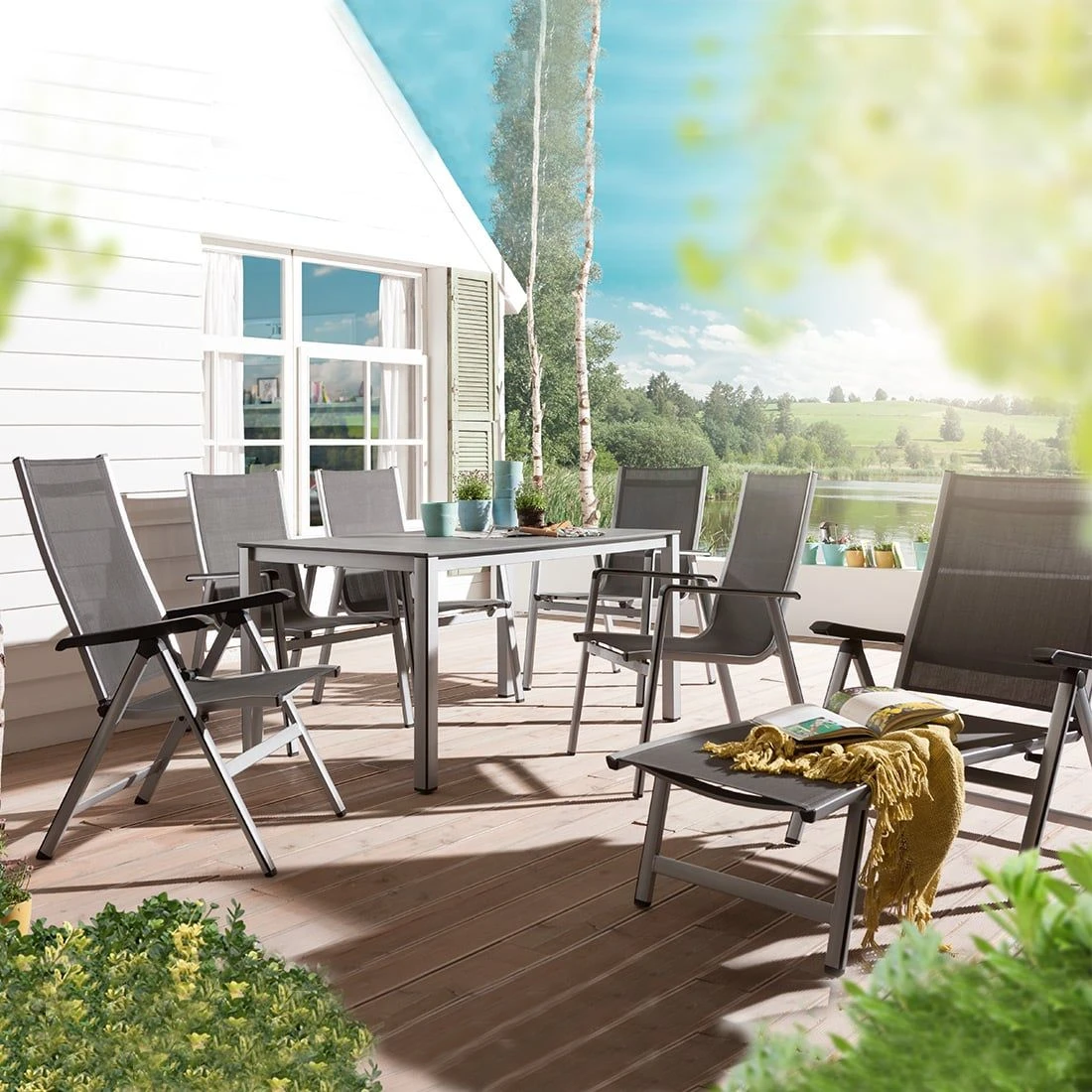 Das Gestell wird aus Aluminium gefertigt. Das Material macht die Gartenliege zu einem robusten Möbel auf Ihrer Terrasse. Farblich ist dieses in Silber gehalten. Die Sitzfläche und der Bezug sind aus Textilene gefertigt. Damit die Gartenliege optisch ansprechend ist, sind die Sitzfläche und der Bezug im Farbton Anthrazit gehalten.