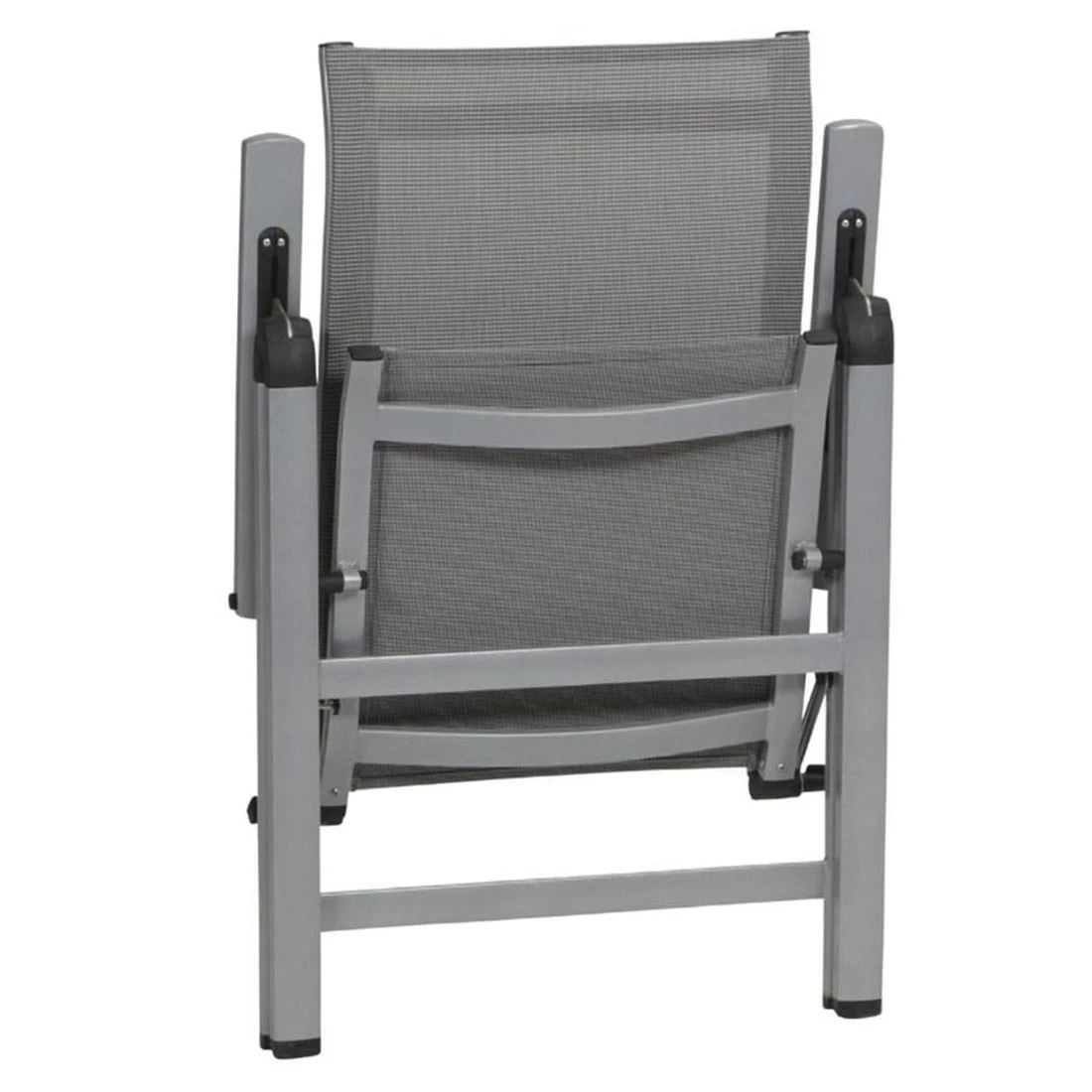 Das Gestell besteht aus pflegeleichtem und wetterfestem Aluminium. Farblich ist dieses in Silber gehalten. Ein weiteres Highlight des Klappsessels ist die Bespannung mit Textilene in der Farbe Grau. Dieser Bezugsstoff überzeugt durch eine hohe Robustheit gegenüber Hitze und Frost und ist leicht zu reinigen. Die Farbgestaltung der Sitzfläche in Grau ist äußerst ansprechend.
