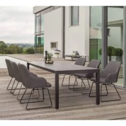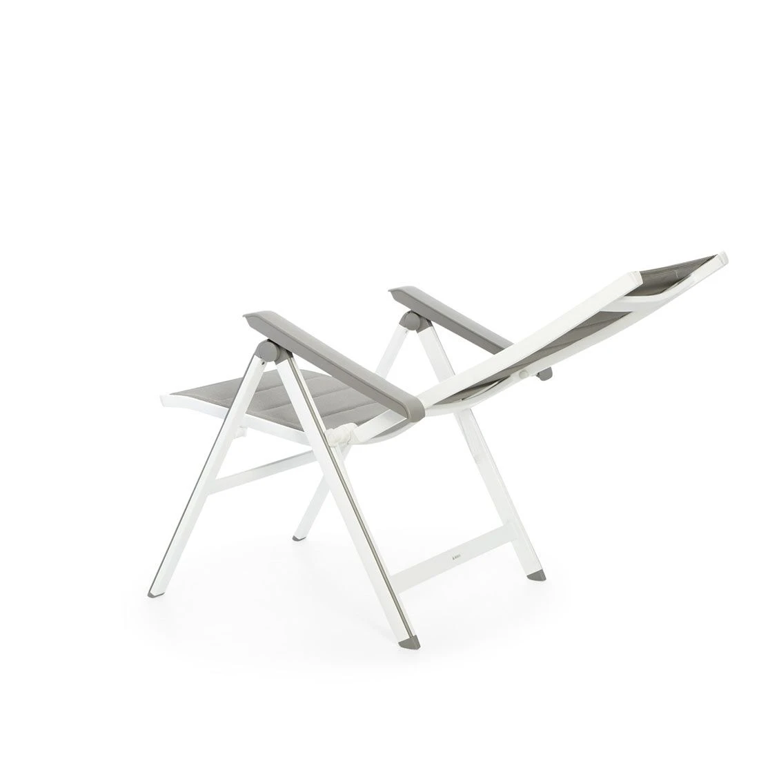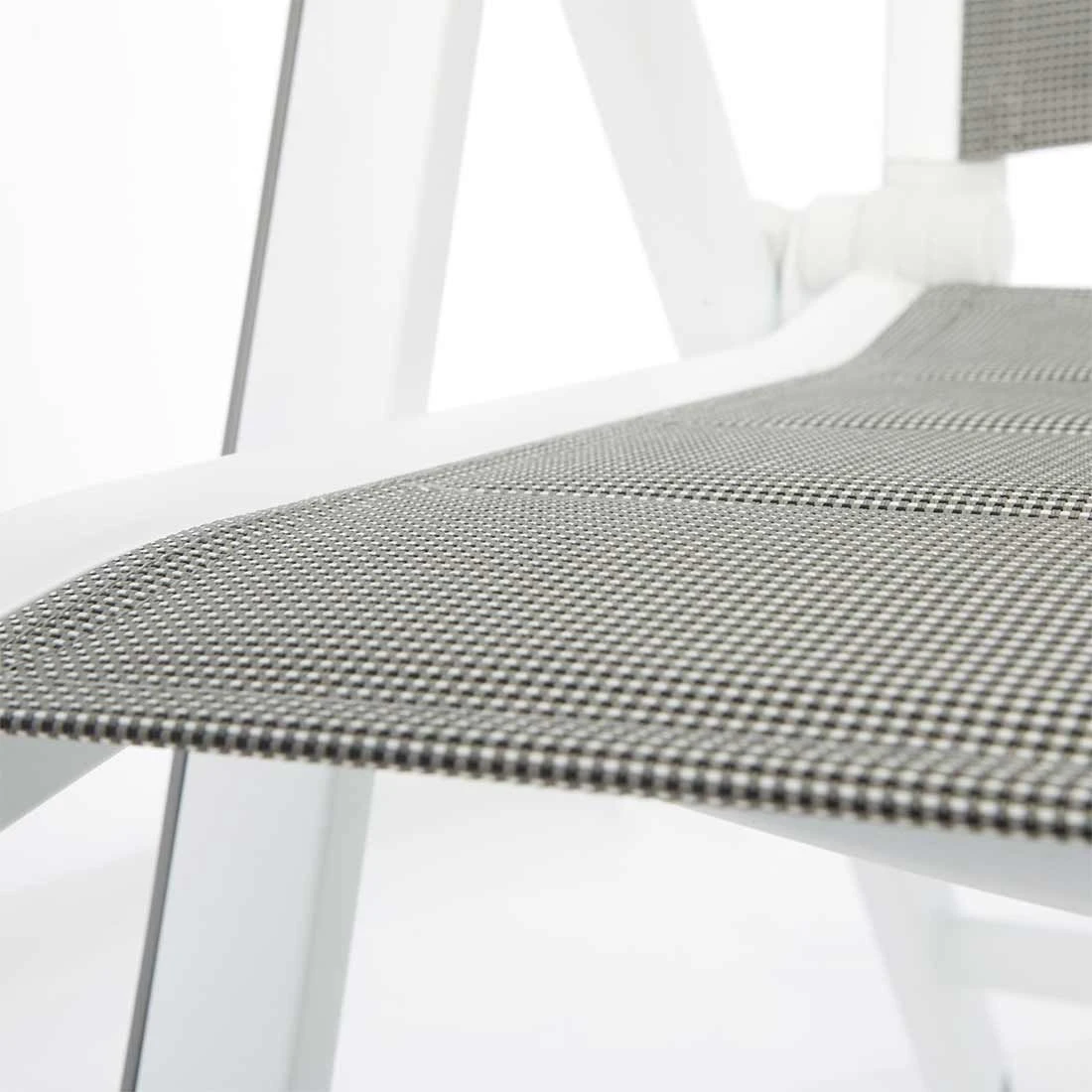 Die Sitzfläche und der Bezug bestehen aus Textilene. Für die Herstellung des Gestells wird hochwertiges und wetterfestes Aluminium verwendet. Für eine attraktive Optik ist das Gestell im Farbton Weiß gehalten. Damit der Klappsessel optisch ansprechend ist, sind die Sitzfläche und der Bezug im Farbton Grau gehalten.