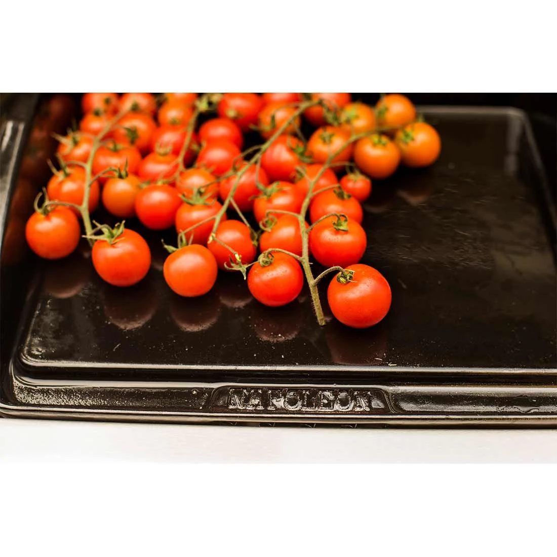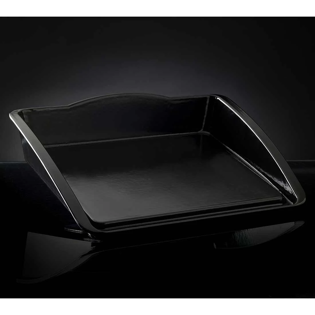 Porzellan-emaillierte Napoleon® Plancha zum Grillen von kleinteiligem Gemüse, Fisch, Meeresfrüchten, Speck oder Burgerpatties. Mit einer Ablaufrinne am Rand und extra hohen Wänden (38 cm x 21 cm x 7,5 cm).