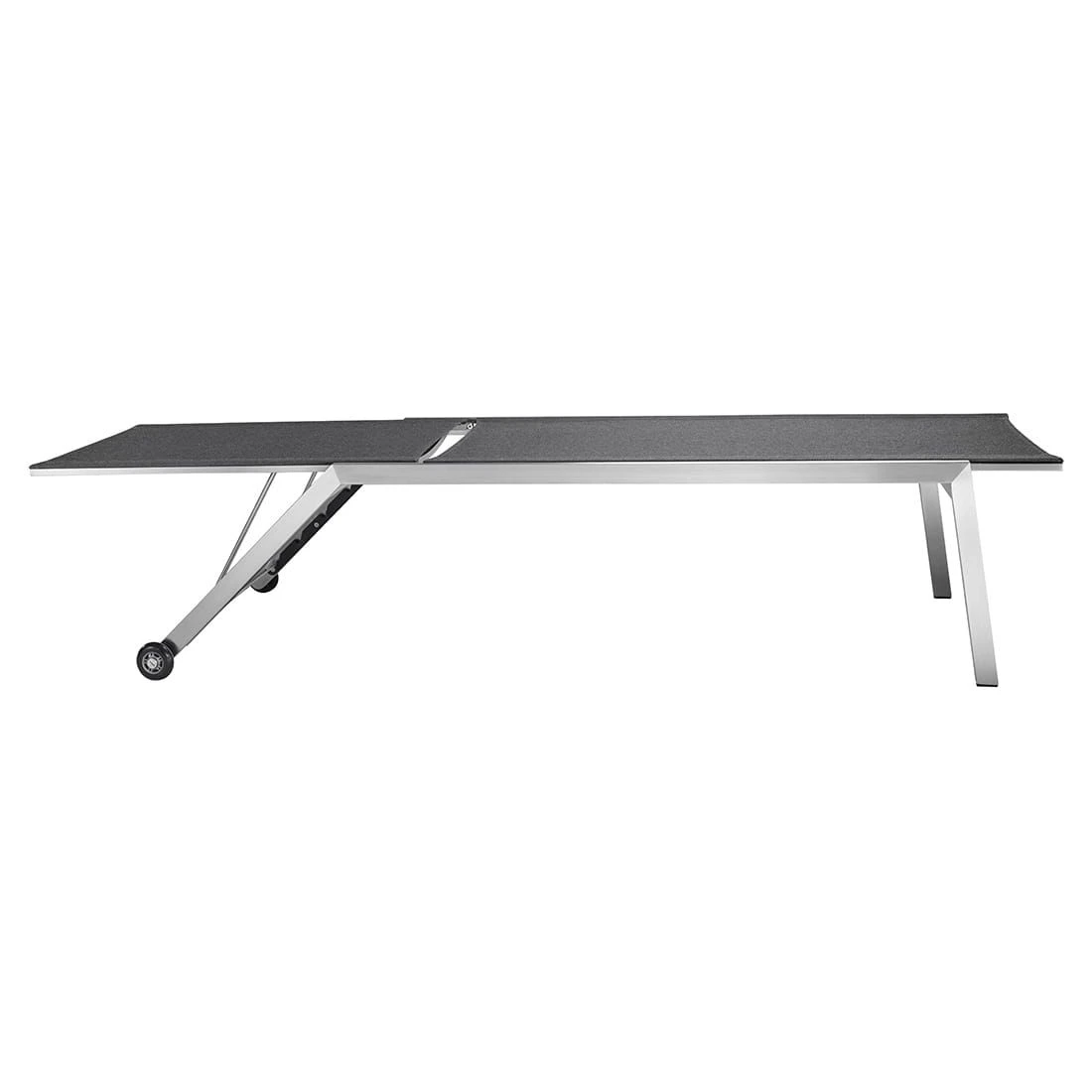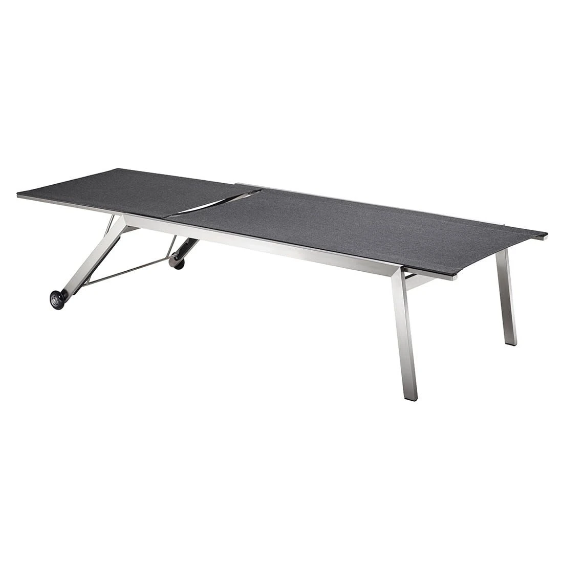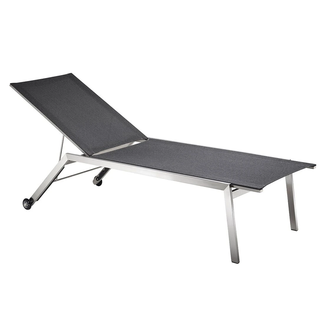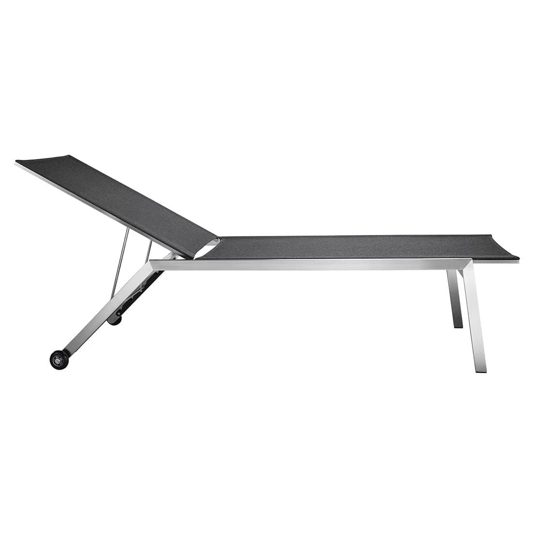 Das Gestell wird aus hochwertigem und pflegeleichtem Edelstahl hergestellt. Dieses Material gewährt der Gartenliege eine hohe Standfestigkeit und Stabilität. Die Sitzfläche wird mit Textilene in der Farbe Coal bespannt. Dieses Material ist reiß- und wetterfest und zeichnet sich durch eine hohe Beständigkeit gegenüber Hitze und Frost aus. Darüber hinaus ist Textilene leicht zu säubern.