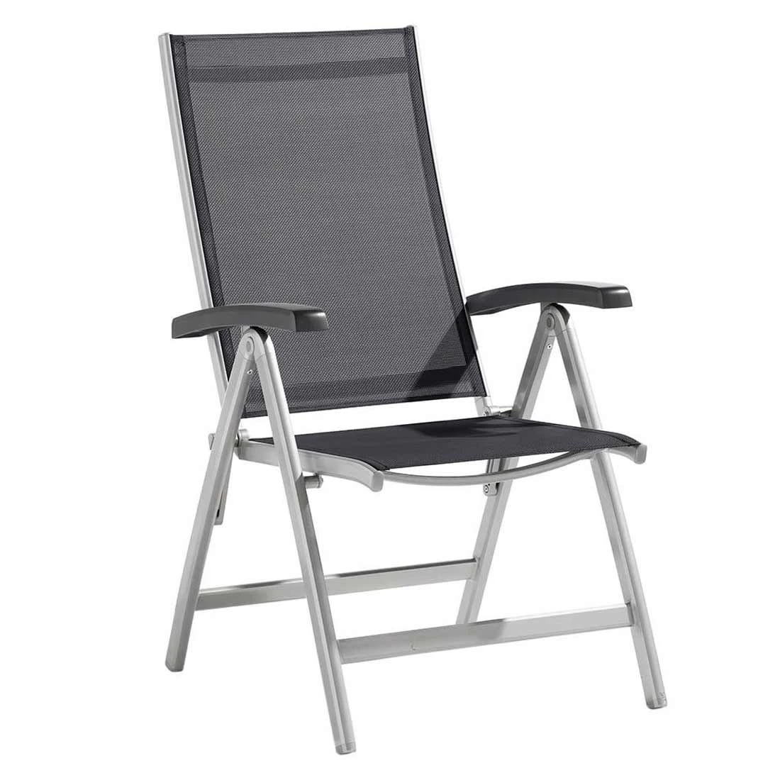 Das Gestell besteht aus pflegeleichtem und wetterfestem Aluminium. Für eine attraktive Optik ist das Gestell im Farbton Graphit gehalten. Für die Bespannung der Sitzfläche verlässt sich der Hersteller auf hochwertiges Textilene. Es zeichnet sich durch eine hohe Robustheit gegenüber Hitze und Frost aus und ist leicht zu reinigen. Die Sitzfläche ist in ansprechendem Grau gehalten.