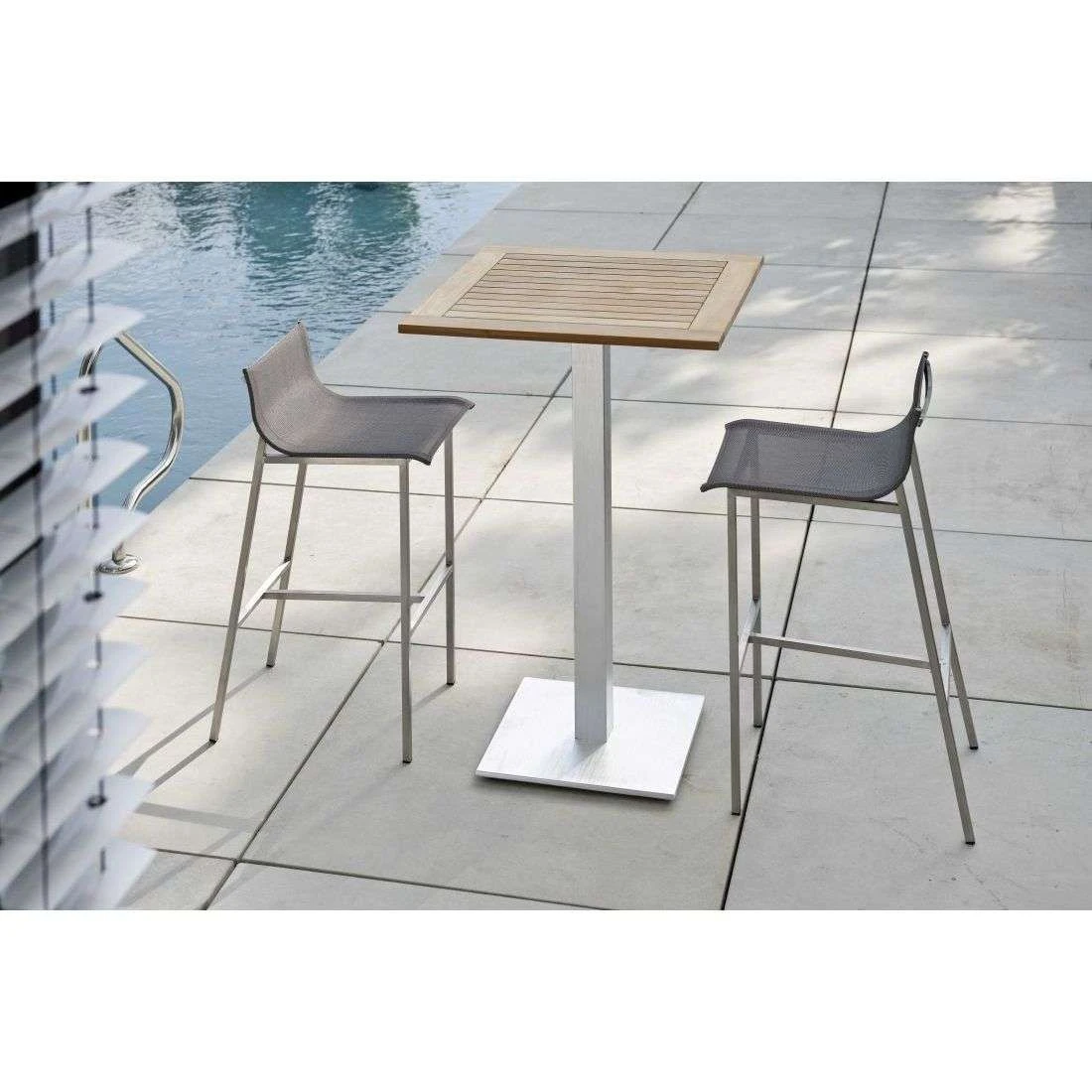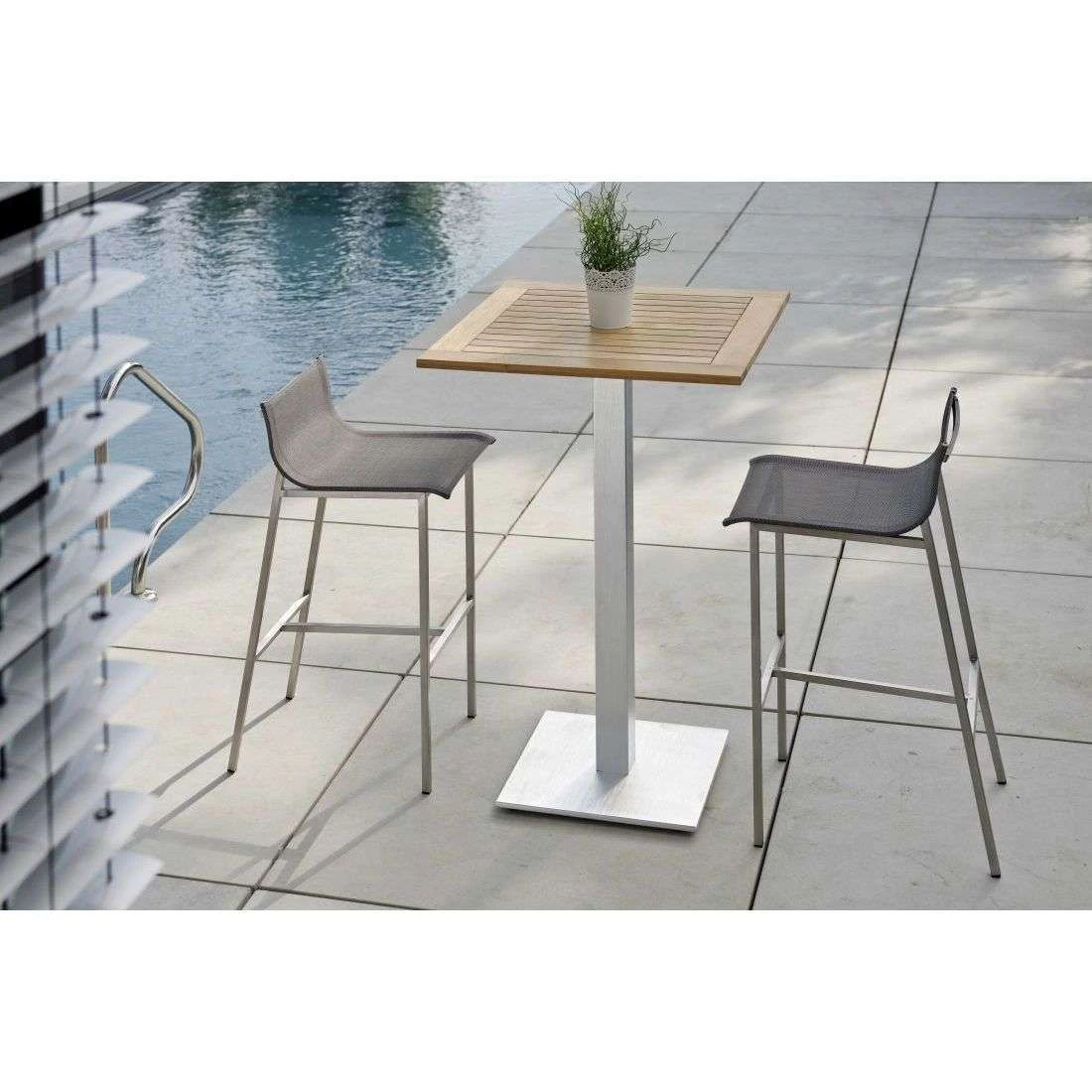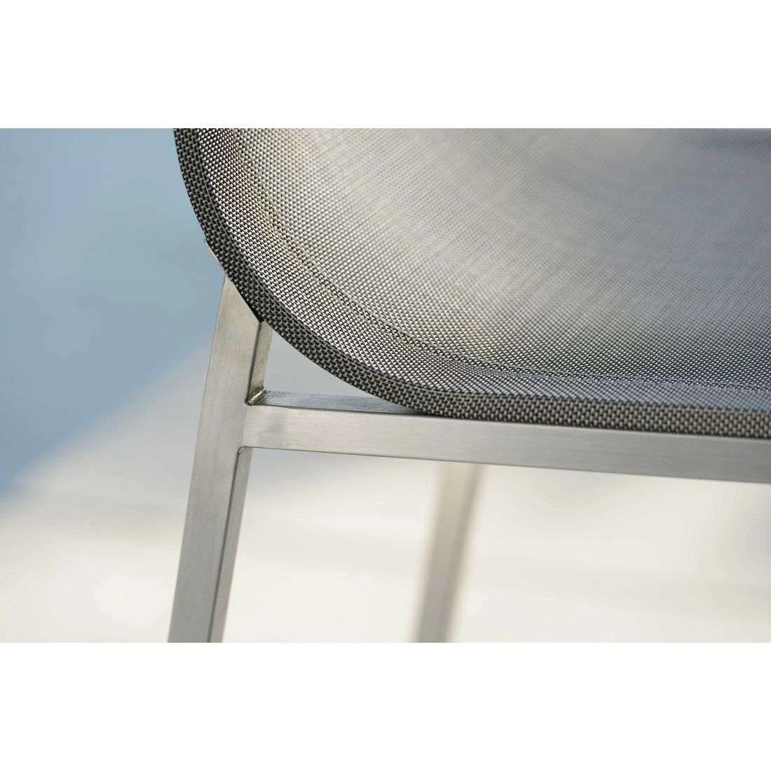 Das Gestell des Garten-Barstuhls besteht aus hochwertigem und pflegeleichtem Edelstahl. Neben seiner ansprechenden Optik bietet dieses Material auch eine hohe Stabilität. Für eine attraktive Optik ist das Gestell im Farbton Silber gehalten. Ein weiteres Highlight des Garten-Barstuhls ist die Bespannung mit Textilene. Dieser Bezugsstoff überzeugt durch eine hohe Robustheit gegenüber Hitze und Frost und ist leicht zu reinigen. Die Sitzfläche ist in ansprechendem Silbergrau gehalten.