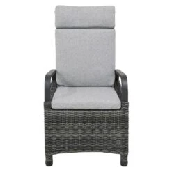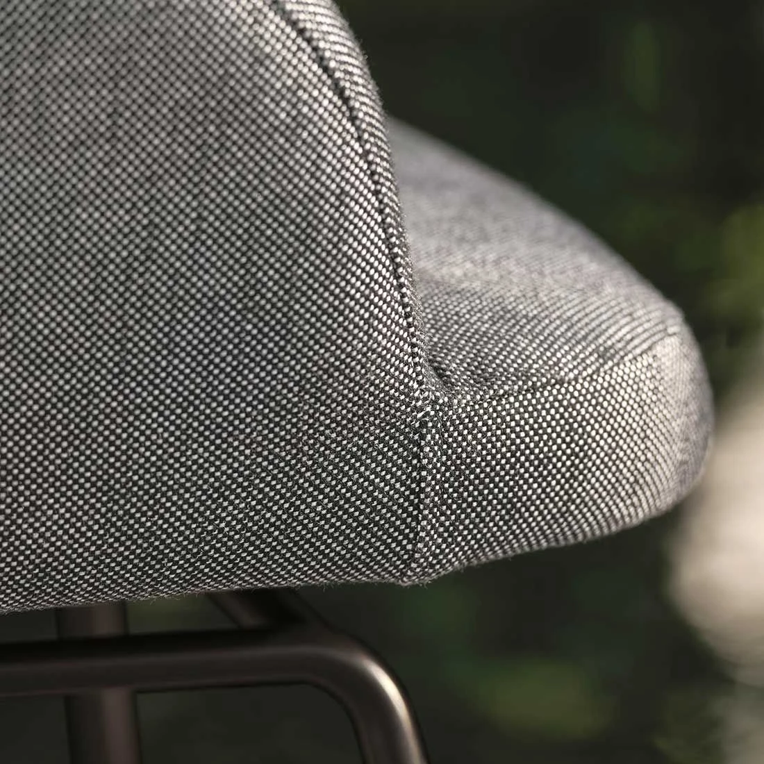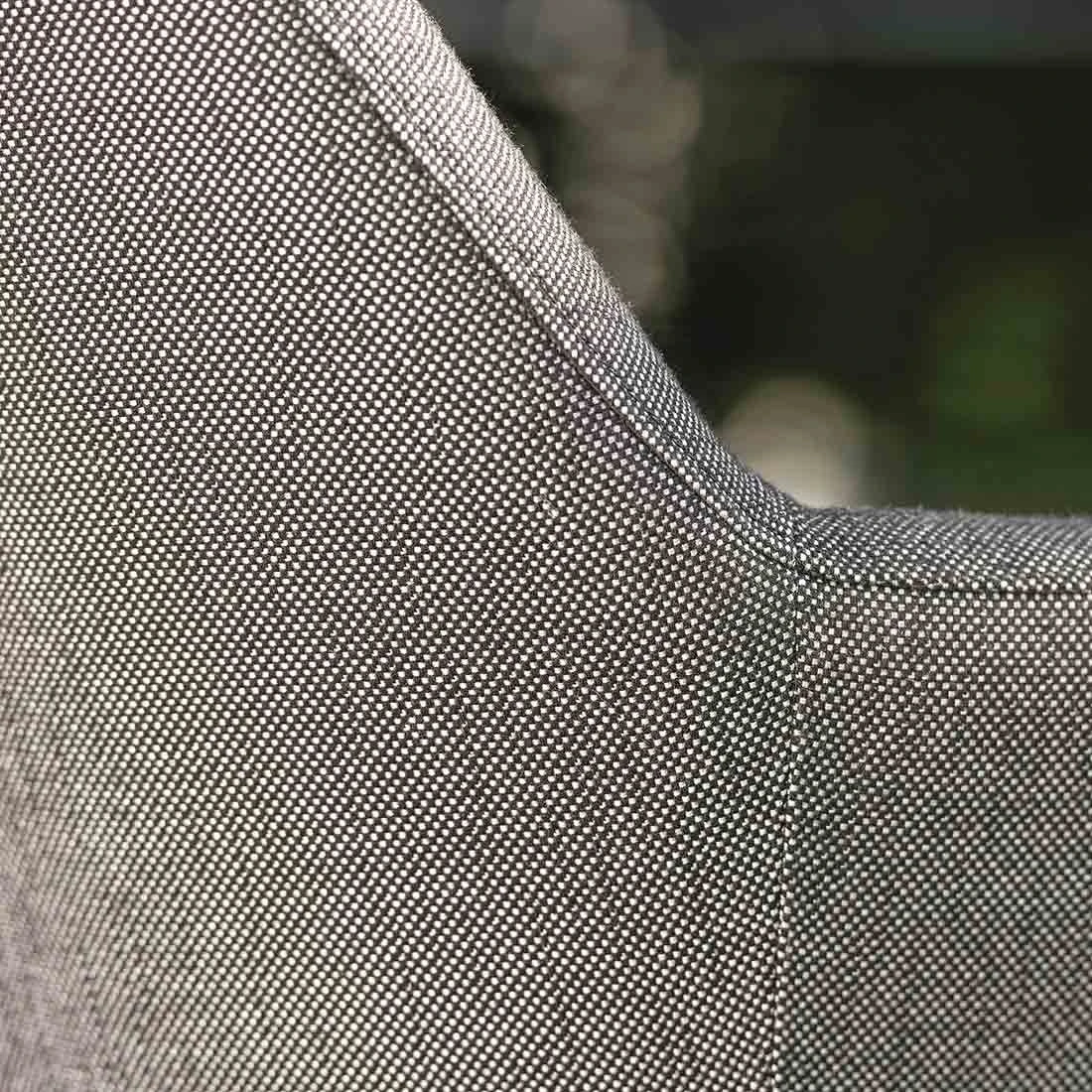 Das Gestell des Gartensessels besteht aus hochwertigem und pflegeleichtem Edelstahl. Neben seiner ansprechenden Optik bietet dieses Material auch eine hohe Stabilität. Für eine attraktive Optik ist das Gestell im Farbton Schwarz gehalten. Die Farbgestaltung der Sitzfläche in Seidenschwarz ist äußerst ansprechend. Als hochwertiges Material für die Bezüge kommt ein Polyacryl-Stoff zum Einsatz. Er ist sehr strapazierfähig und bietet somit die idealen Voraussetzungen für den Einsatz im Freien.
