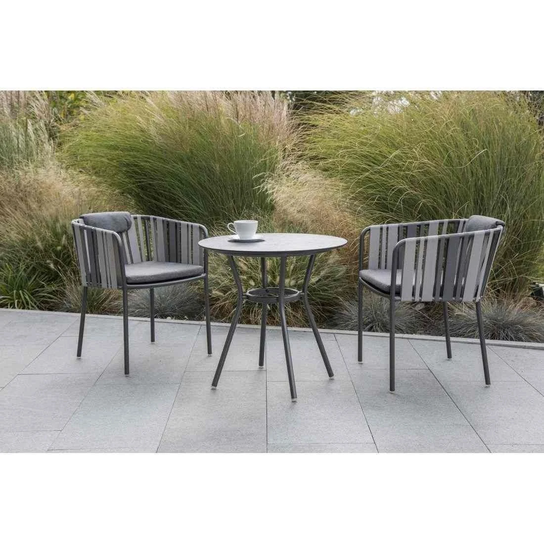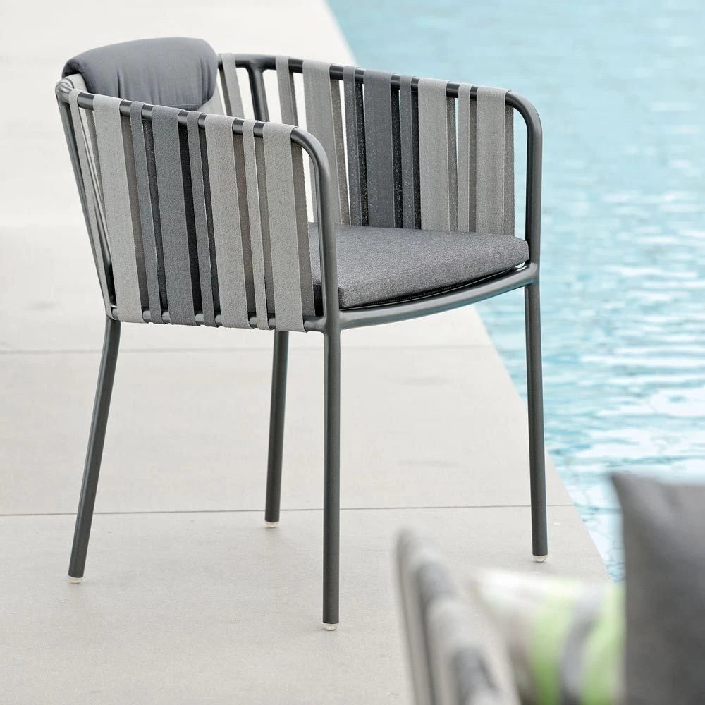 Das Gestell wird aus Aluminium gefertigt. Das geringe Eigengewicht des Materials macht den Gartensessel zu einem robusten, aber dennoch leicht zu transportierenden Sitzmöbel auf Ihrer Terrasse. Für eine attraktive Optik ist das Gestell im Farbton Anthrazit gehalten. Hochwertiges Rope umgibt das robuste Gestell und verleiht dem Gartensessel damit einen ganz besonderen Look. Als hochwertiges Material für die Bezüge kommt ein Polyacryl-Stoff zum Einsatz. Er ist sehr strapazierfähig und bietet somit die idealen Voraussetzungen für den Einsatz im Freien. Damit der Gartensessel optisch ansprechend ist, sind die Sitzfläche und der Bezug im Farbton Seidengrau gehalten.