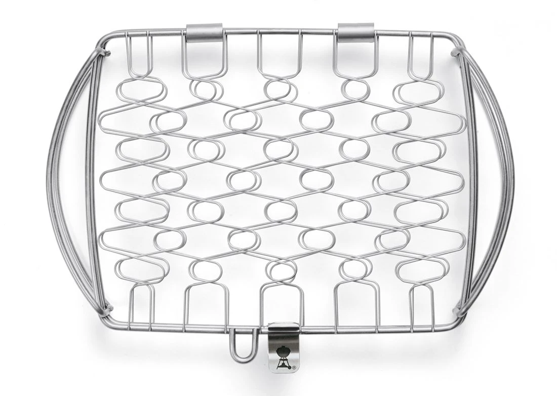 Fisch- und Gemüsehalter Edelstahl groß rechteckig – für alle Weber Gasgrill ab Q 300 und Holzkohlgrills 57 cm geeignet.